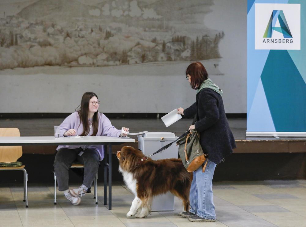 tttttttttttt2月23日,在德国北莱茵-威斯特法伦州阿恩斯贝格,选民在一处投票站投票。新华社记者 张帆 摄tttttt
