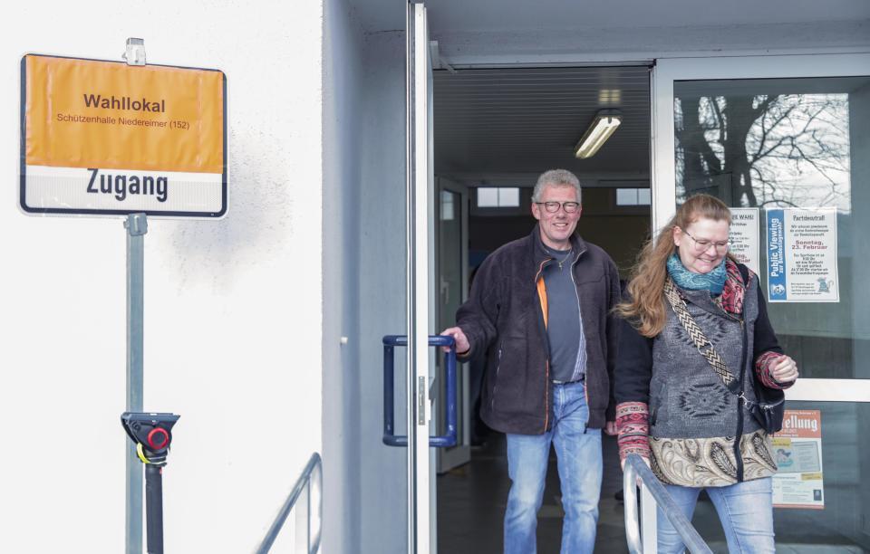tttttttttttt2月23日,在德国北莱茵-威斯特法伦州阿恩斯贝格,选民投票后离开投票站。新华社记者 张帆 摄tttttt